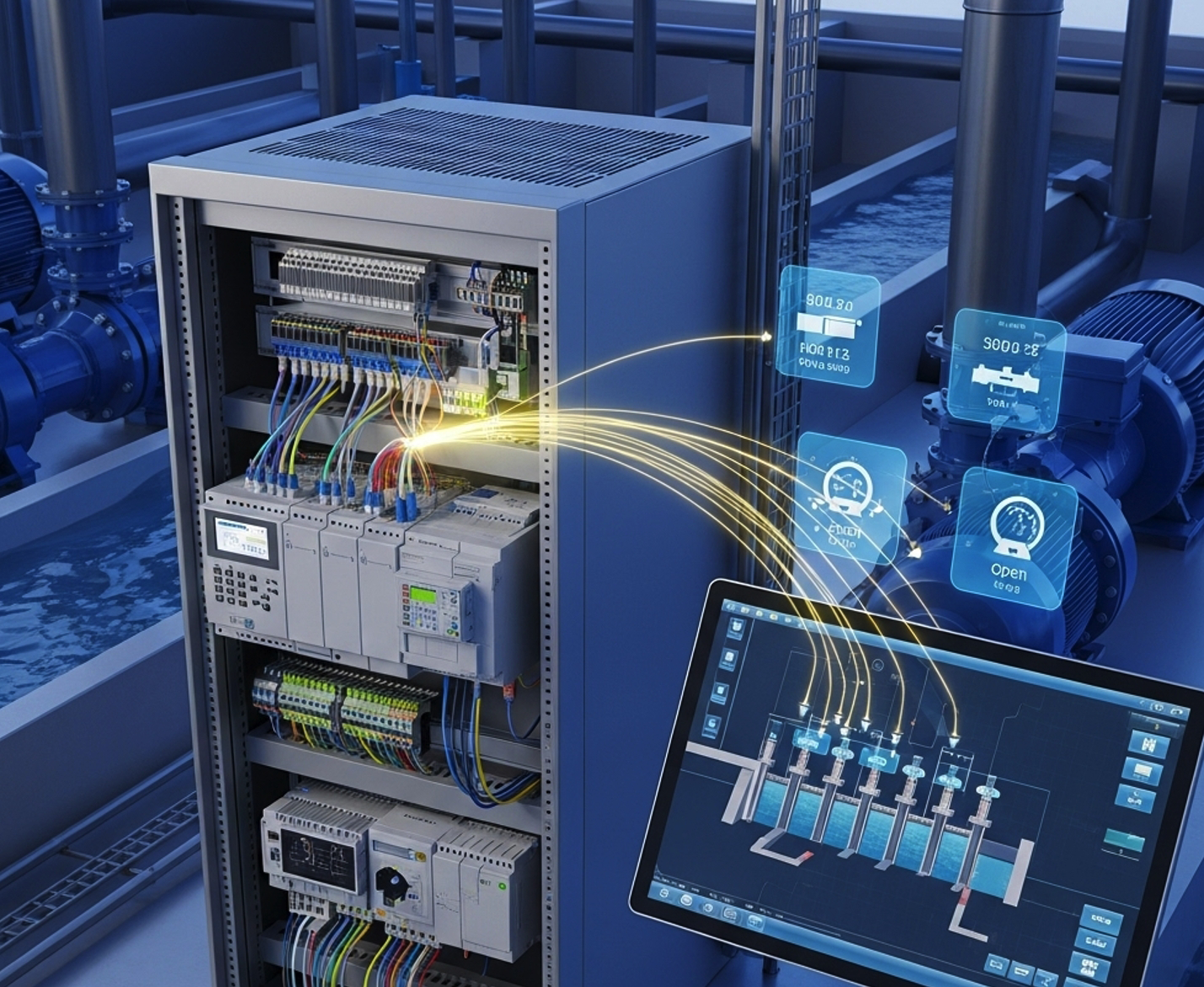 ระบบที่ใช้ในการควบคุมและบริหารจัดการการทำงานของเครื่องสูบน้ำในหลากหลายสถานการณ์ เช่น การสูบน้ำจากบ่อ, คลอง, อ่างเก็บน้ำ, หรือการระบายน้ำจากพื้นที่ที่มีการท่วม เพื่อให้การสูบน้ำเกิดประสิทธิภาพสูงสุด โดยสามารถควบคุมการทำงานตามสภาวะต่างๆ เช่น ระดับน้ำ, ความดัน หรืออุณหภูมิ